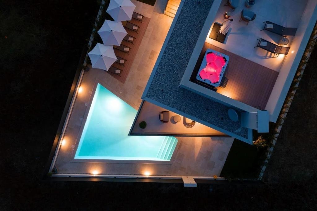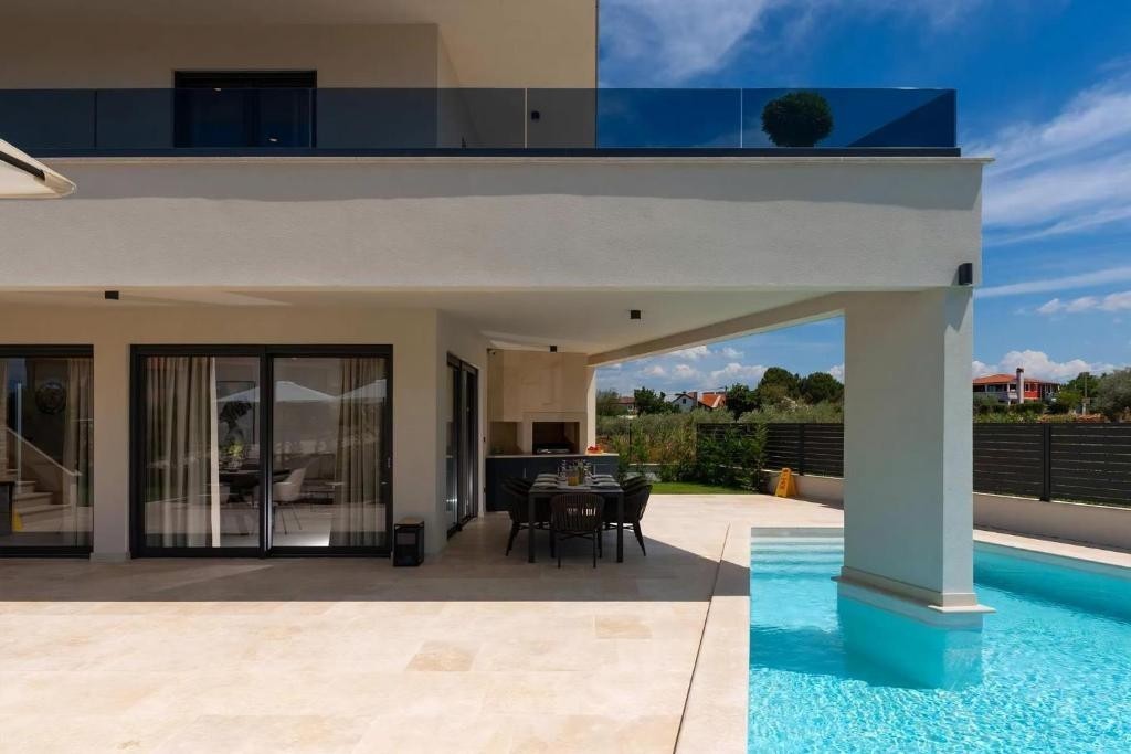 Poreč – wir verkaufen eine schöne freistehende moderne Villa in der Gegend von Poreč mit einer Wohnfläche von ca. 220 m2 – Die Villa erstreckt sich über zwei Etagen und verfügt über eine Dachterrasse mit Whirlpool und Meerblick – Erdgeschoss: Wohnzimmer, Küche und Esszimmer, Badezimmer, Abstellraum und überdachte Terrasse mit Sommerküche – Erster Stock: drei Schlafzimmer und zwei Badezimmer – Dachterrasse mit wunderschönem Meerblick – Fußbodenheizung im Erdgeschoss über eine Wärmepumpe – Klimaanlage in den Zimmern – Alarmanlage – Die Villa verfügt über einen Swimmingpool und einen angelegten Garten sowie zwei Parkplätze – Das Anwesen wird möbliert verkauft und ist ideal für die touristische Vermietung.
