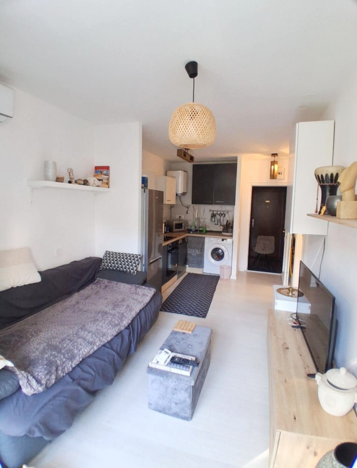 Clever use of space: it consists of an open living room with kitchen, a closed balcony that adds functionality to the space, a spacious bedroom with a double bed and a modern bathroom.