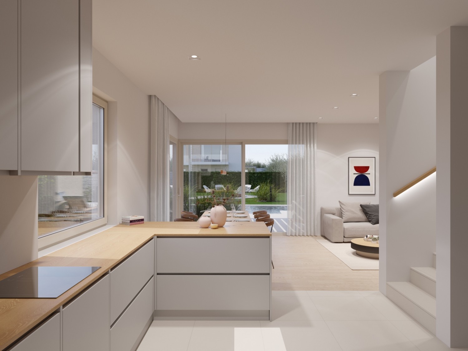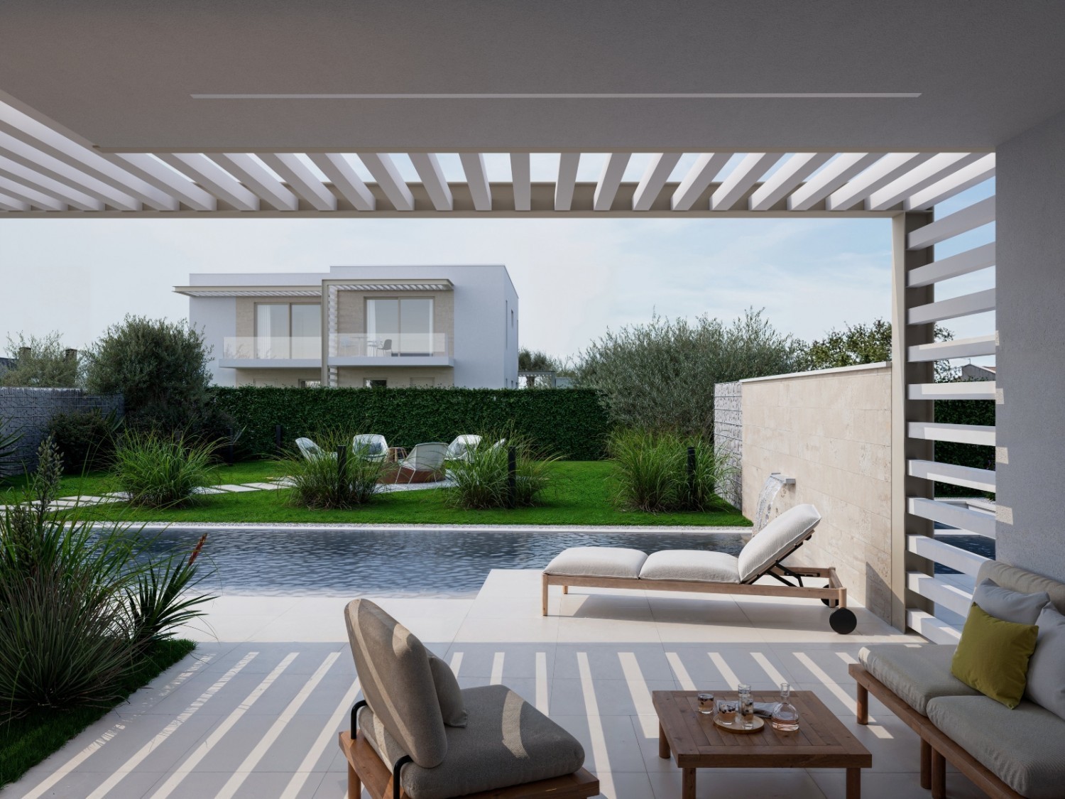 3B Ekskluzivna prodaja- cca 55 km od Pule i aerodroma, u Kašteliru, mjestu sa odličnom infrastrukturom, pogodnim za kvalitetan život- Kaštelir Labinci uvršten je u programu Svjetske turističke organizacije za najbolje turističko selo – prodaje se kvalitetna moderna kuća u nizu u izgradnji sa bazenom, cca 9 km od mora i cca 12 km od Poreča- kuća se nalazi na jako lijepo lokaciji u blizini centra a opet dalje od prometa, u uređenom naselju- Kuća od 137,25 m2 prostire se na dvije etaže. Prizemlje se sastoji od: natkrivenog ulaza, hodnika, dnevnog boravka , kuhinje i blagovaonice, kupaonice, spremišta, ostave i terase- kat se sastoji od: hodnika, gospodarskog prostora, dvije spavaće sobe svaka sa svojim kupatilom i izlazom na terasu. Kupatila će biti opremljena armaturama i sanitarijama- rolete i komarnici- Grijanje: podno grijanje putem dizalice topline zrak-voda- instalacije za solarno grijanje tople vode i pred instalacija za solarne panele nadstrešnica- bazen- Okućnica će biti uređena travnatim površinama i tlakovcem- kuća će biti spojena na kanalizaciju. Ova kuća je idealna za stanovanje i turistički najam, a pogotovo je interesantna za ljubitelje biciklizma i aktivnog odmora. Okućnica ca 337 m2.