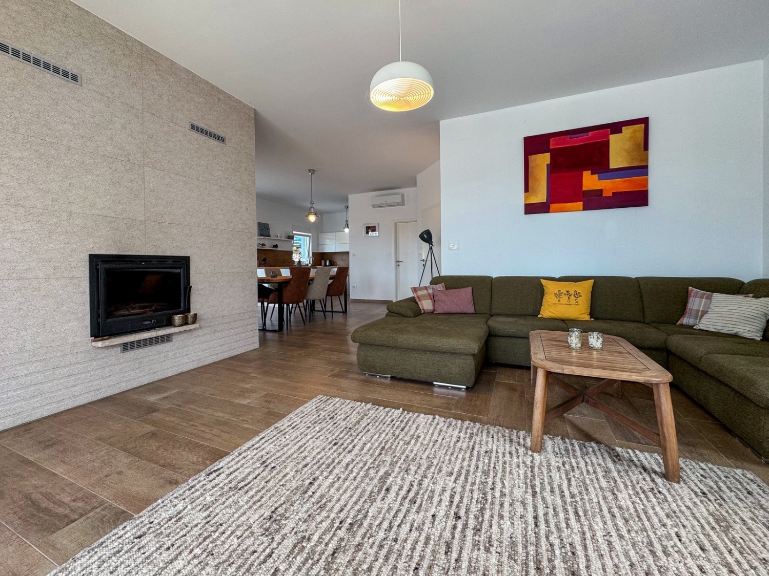 U mirnom dijelu istočne Istre, na svega 15-ak minuta vožnje od mora i plaža, prodaje se luksuzna moderna vila s bazenom i panoramskim pogledom na more. Smještena u prirodnom okruženju, ova kuća nudi potpunu privatnost i mir, a istovremeno se nalazi u blizini svih važnih sadržaja, što je čini savršenim izborom za odmor ili život tijekom cijele godine.
