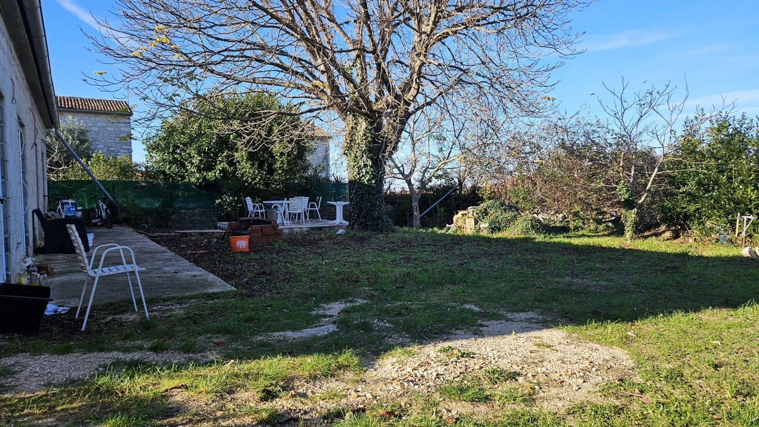 Prostrano dvorište s pogledom na more nudi dovoljno prostora za izgradnju bazena, sunčališta, ljetne kuhinje i ostalih sadržaja za uživanje na otvorenom.