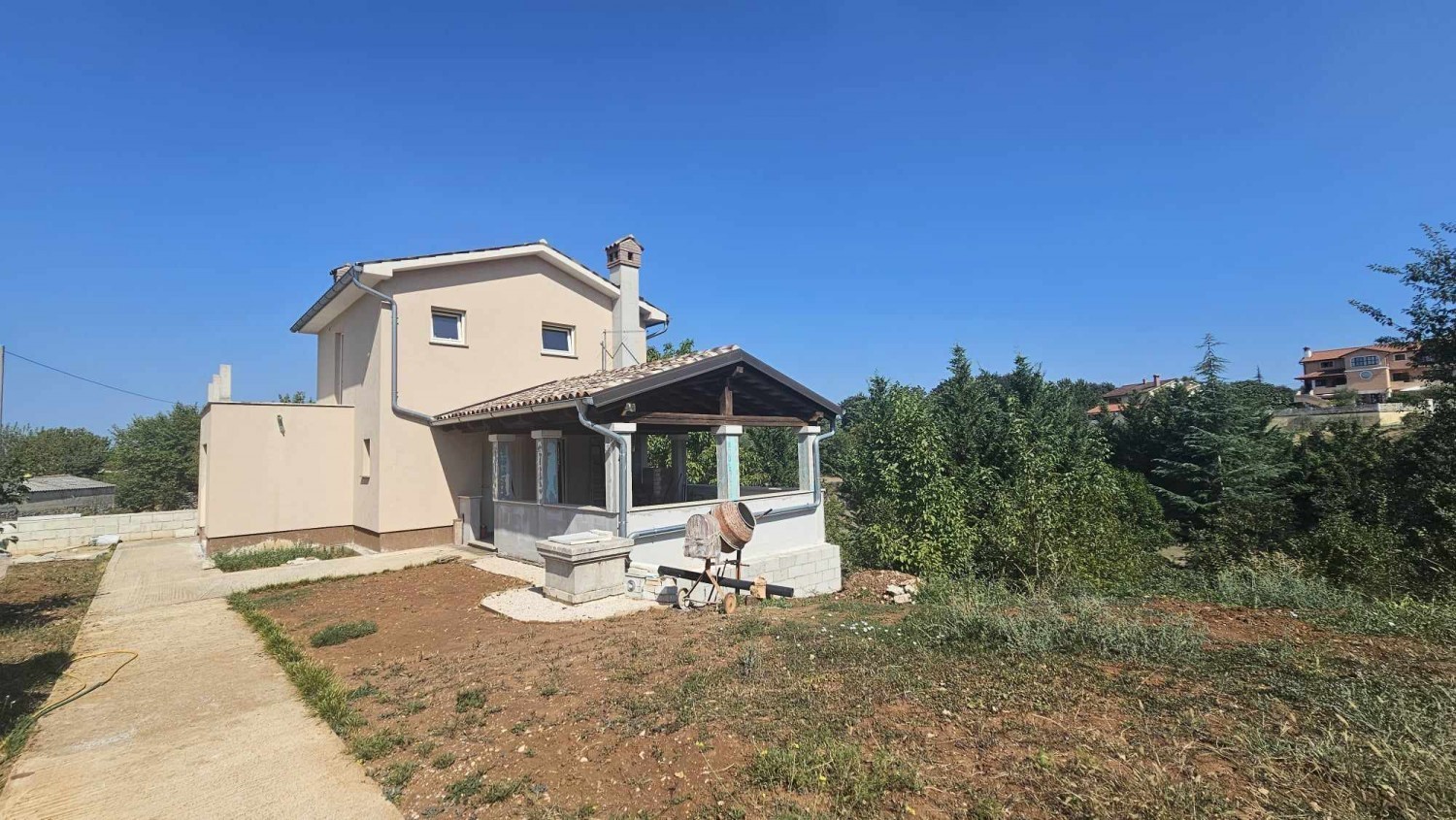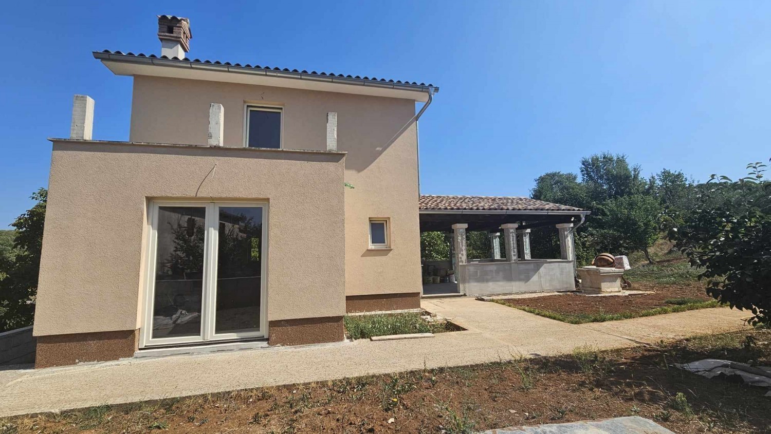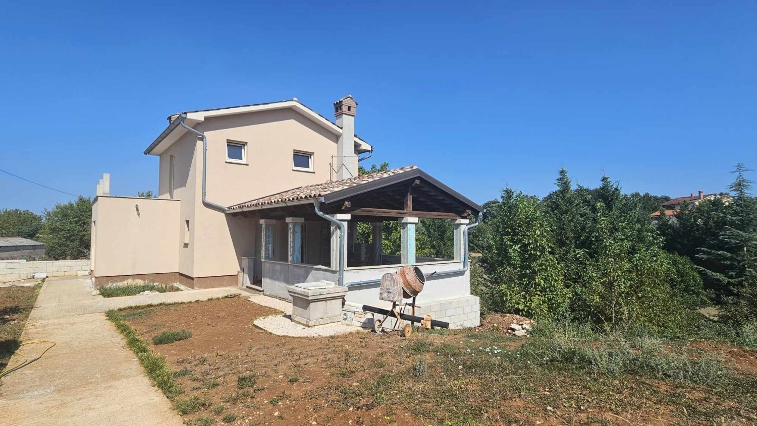 Dintorni di Tinjan - 18 km da Parenzo e dal mare, casa in vendita di 176 m2 su un ampio terreno di 1765 m2 - seminterrato: 40 m2 come parte separata della casa dispone di soggiorno con cucina e bagno - piano terra: spazioso soggiorno, cucina, sala da pranzo, wc e terrazzo con cucina estiva - 1° piano: due camere da letto, bagno e terrazzo - La casa viene venduta nello stato attuale ed è necessario completare l'installazione dei pavimenti e dei sanitari.