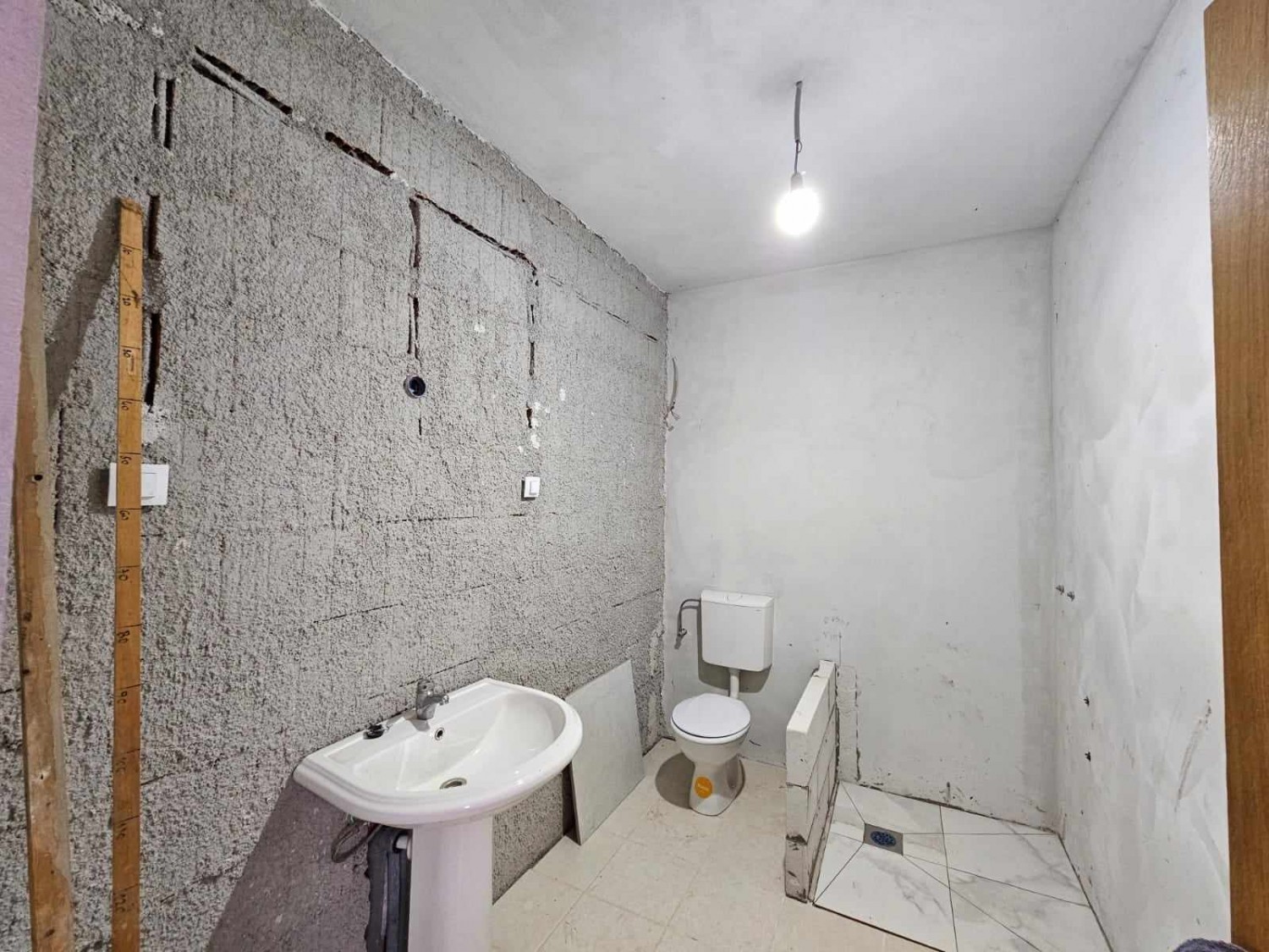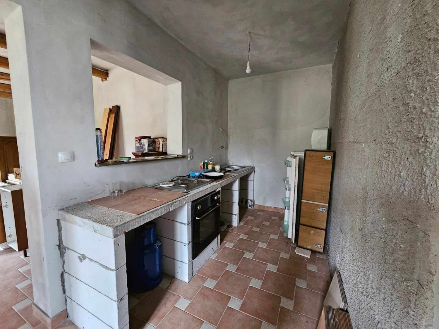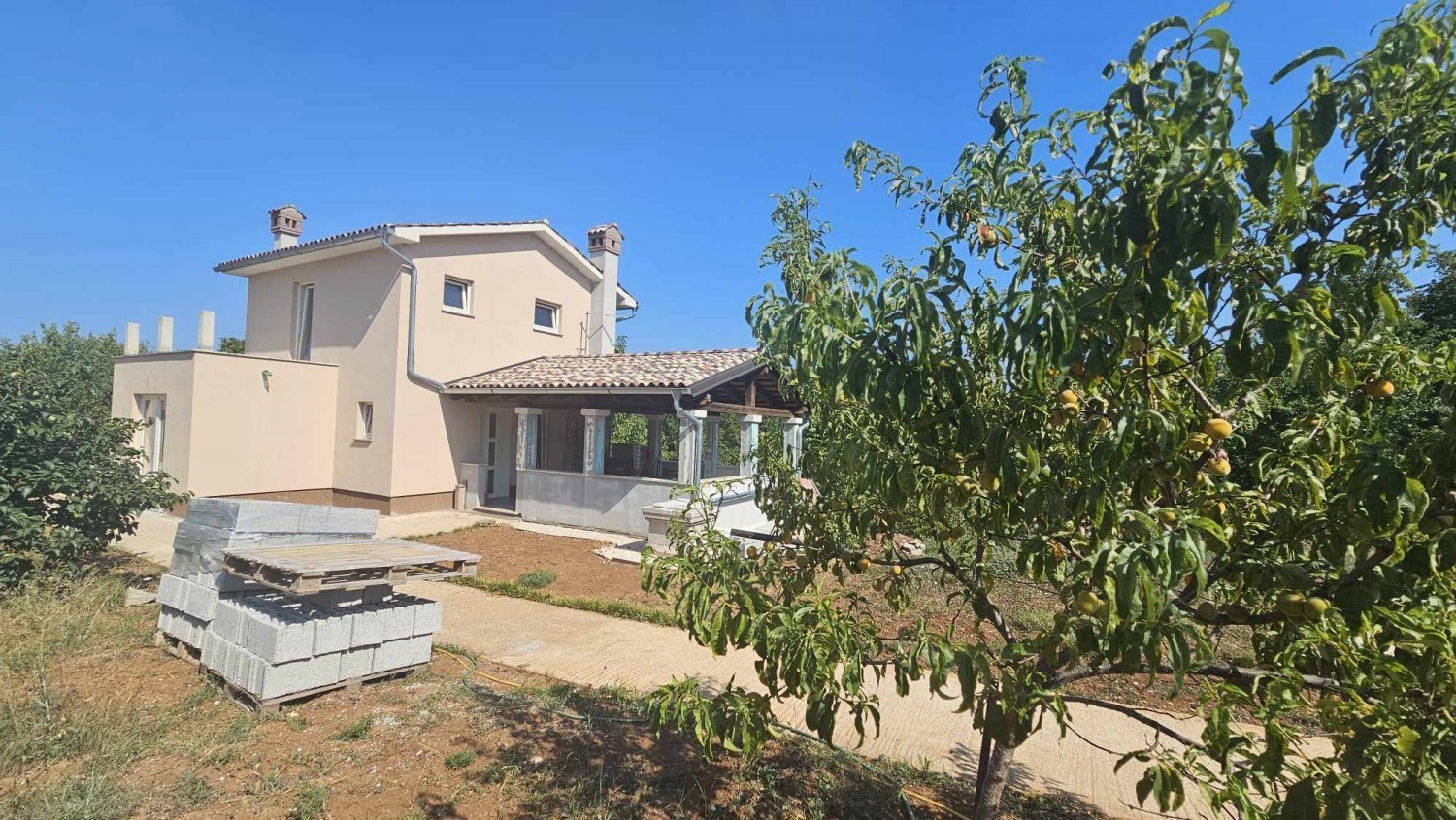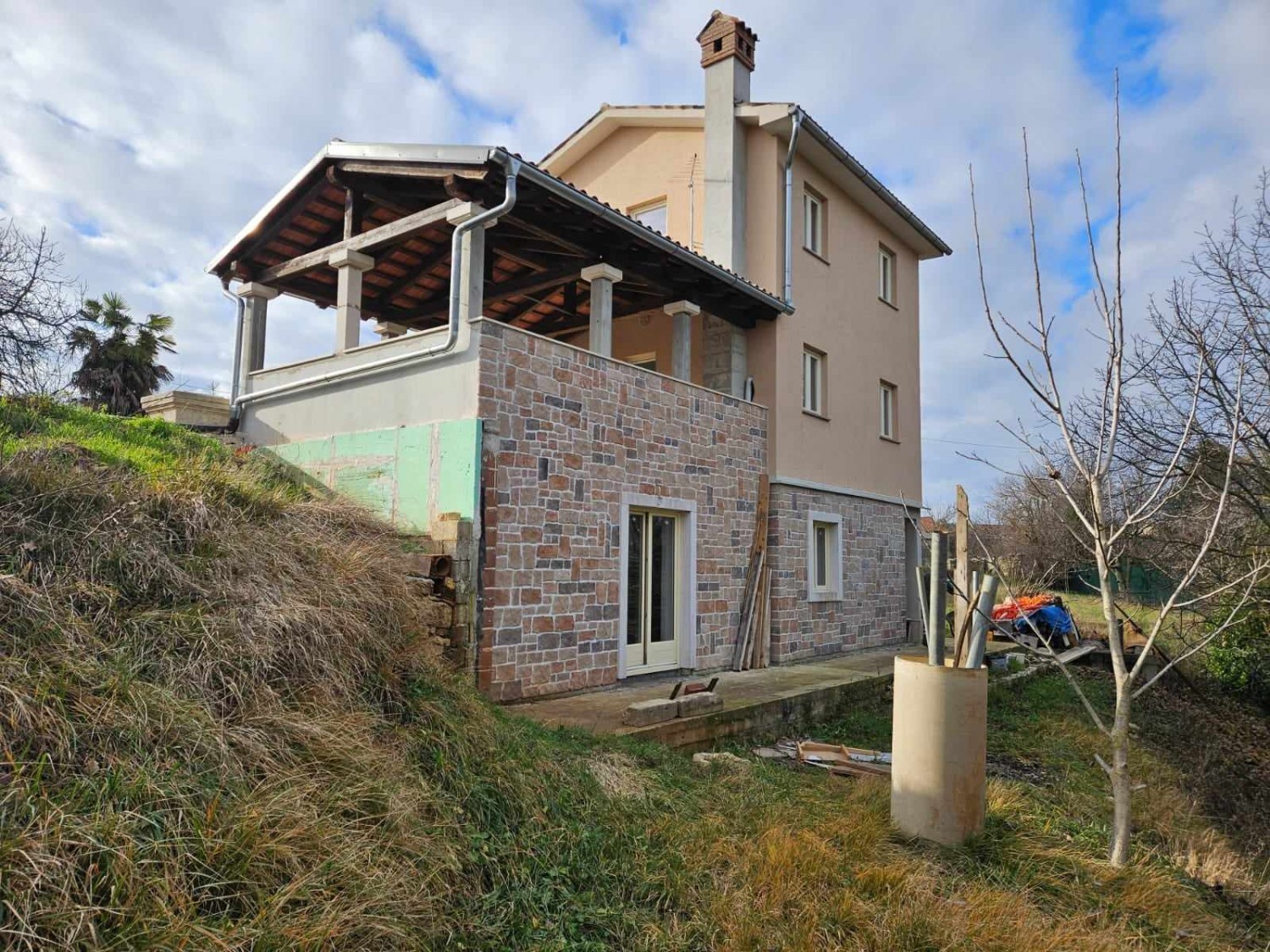 Dintorni di Tinjan - 18 km da Parenzo e dal mare, casa in vendita di 176 m2 su un ampio terreno di 1765 m2 - seminterrato: 40 m2 come parte separata della casa dispone di soggiorno con cucina e bagno - piano terra: spazioso soggiorno, cucina, sala da pranzo, wc e terrazzo con cucina estiva - 1° piano: due camere da letto, bagno e terrazzo - La casa viene venduta nello stato attuale ed è necessario completare l'installazione dei pavimenti e dei sanitari.