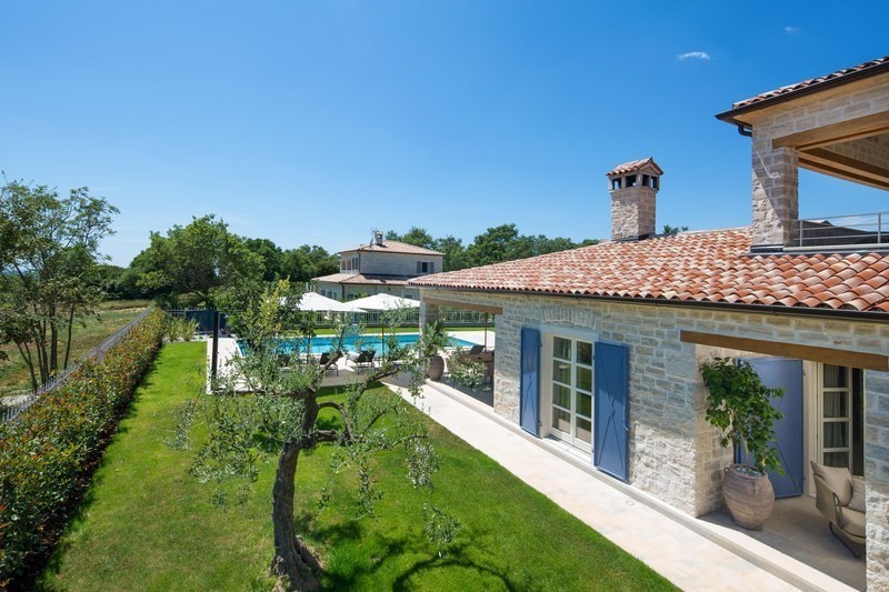 Notranji prostori izžarevajo toplino in eleganco zaradi harmonične povezave tradicije in sodobnega dizajna — avtentičen istrski kamen je lepo združen z modernim pohištvom in detajli. Na parceli velikosti 824 m² se nahaja bazen, popoln za sprostitev. Okolica ponuja tudi športne vsebine, kot so teniška in košarkarska igrišča ter druge aktivnosti na prostem, kar nepremičnino uvršča med odlične izbire za aktiven življenjski slog.