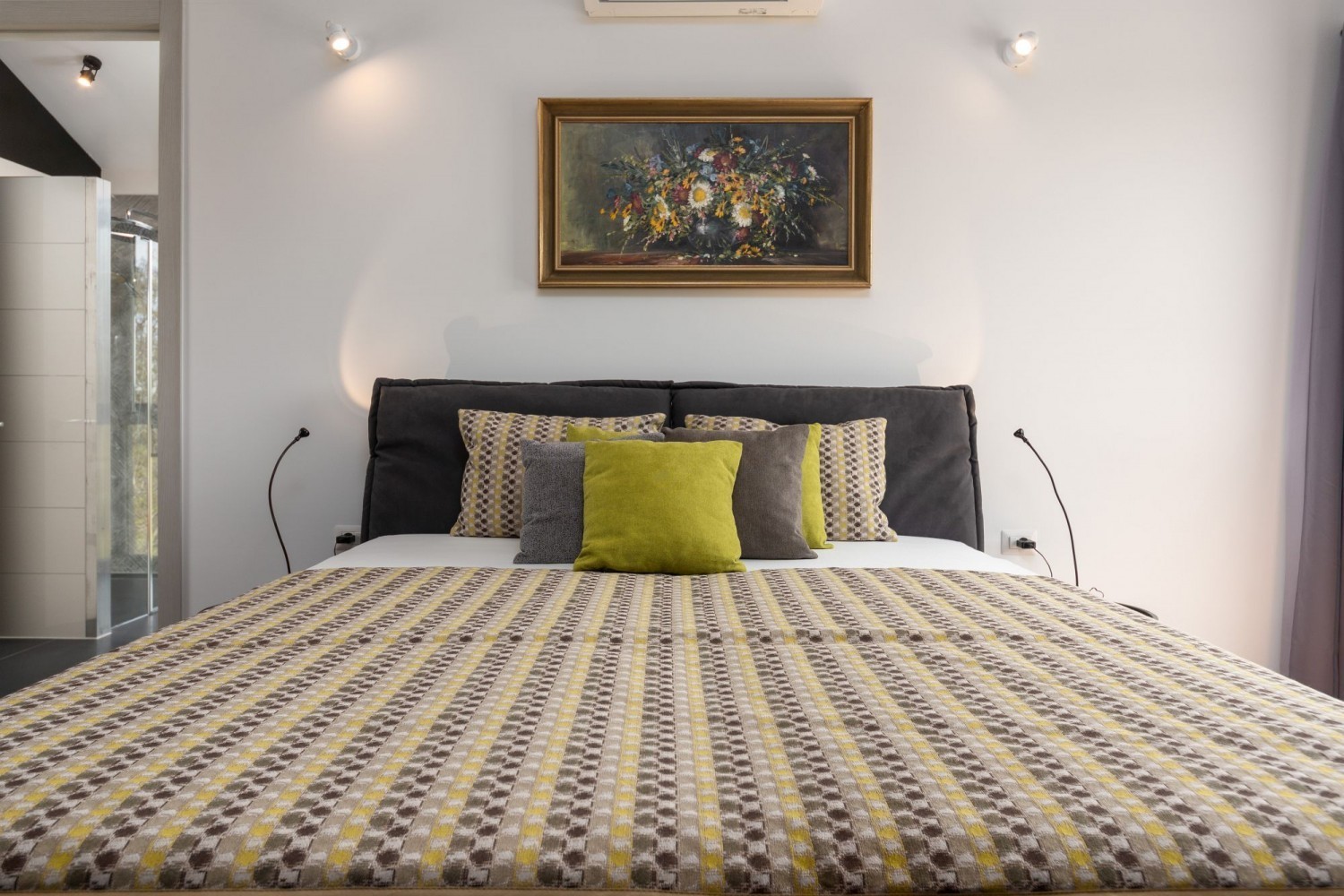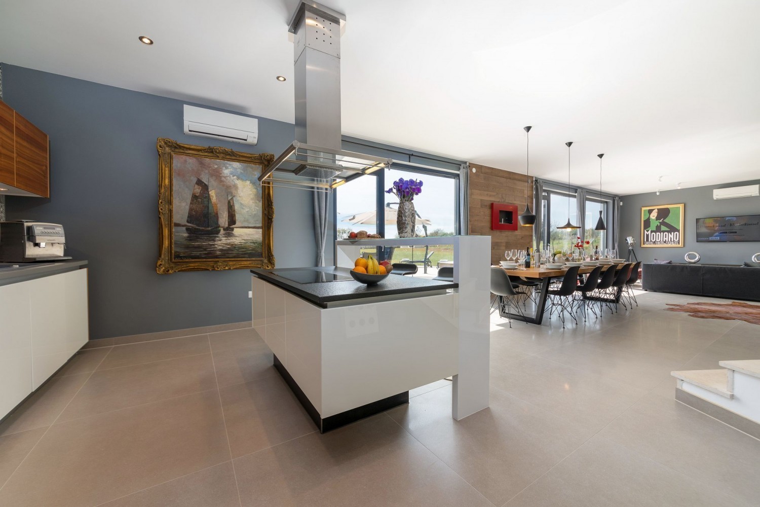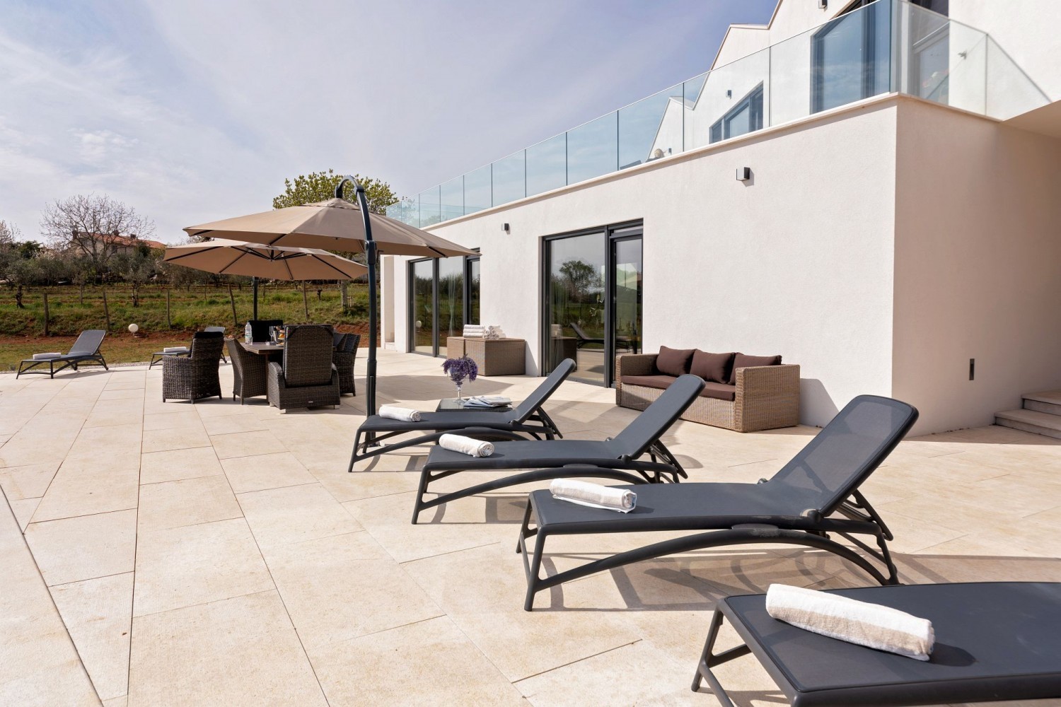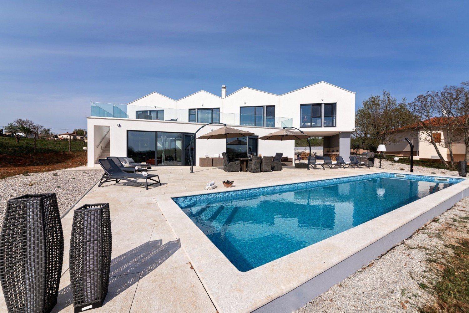 Približno 15 km od Poreča in morja, na izjemno mirni lokaciji, se prodaja lepa opremljena in opremljena vila 454 m2 z bazenom 36 m2 - pritličje: dnevna soba + kuhinja, 2 spalnici, 2 kopalnici, 2 WC-ja , shramba, pralnica + kurilnica, pokrita terasa - nadstropje: 4 spalnice, 4 kopalnice, terasa - talno gretje, klima - alarm - vila ima parkirišče za 6 avtomobilov. Površina vrta 6271 m2 - urejena okolica. Čudovit pogled na naravo.