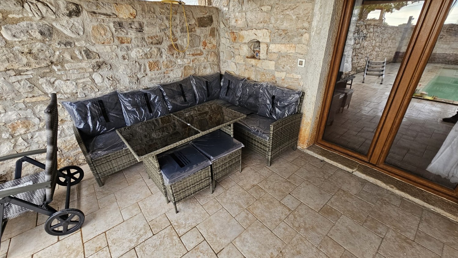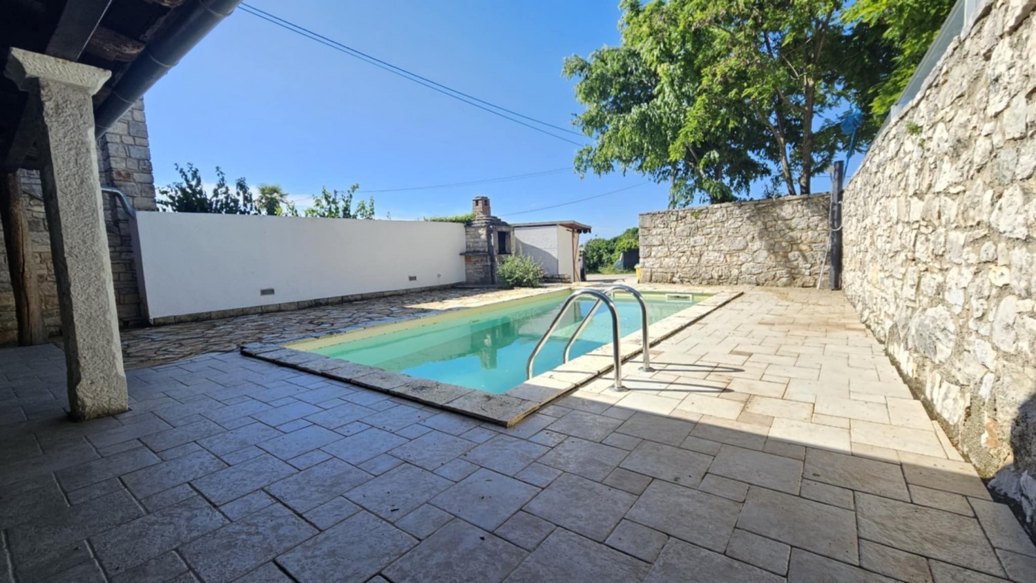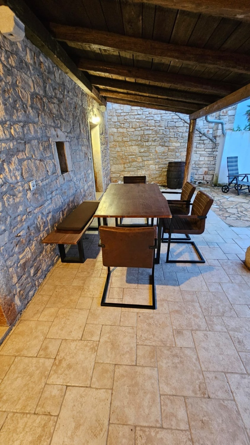 Ta očarljiva kamnita hiša se nahaja v mirni vasici, le 7 km od Poreča in obale, idealna za ljubitelje istrskega šarma in zasebnosti. Hiša je popolnoma prenovljena in opremljena ter obsega približno 120 m² bivalne površine. V pritličju se nahaja dnevna soba s kaminom, kuhinja z jedilnico, kopalnica in shramba. V zgornjem nadstropju sta dve udobni spalnici in dodatna kopalnica. Podstrešje je prostor, ki ga lahko uredite po lastnih željah. Vrt velikosti približno 200 m² vključuje bazen, več parkirnih mest in kamin za peko na žaru. Hiša je klimatizirana in ima kamin - elektrika, voda in kanalizacija. Za več informacij ali za dogovor o ogledu nas prosim kontaktirajte.