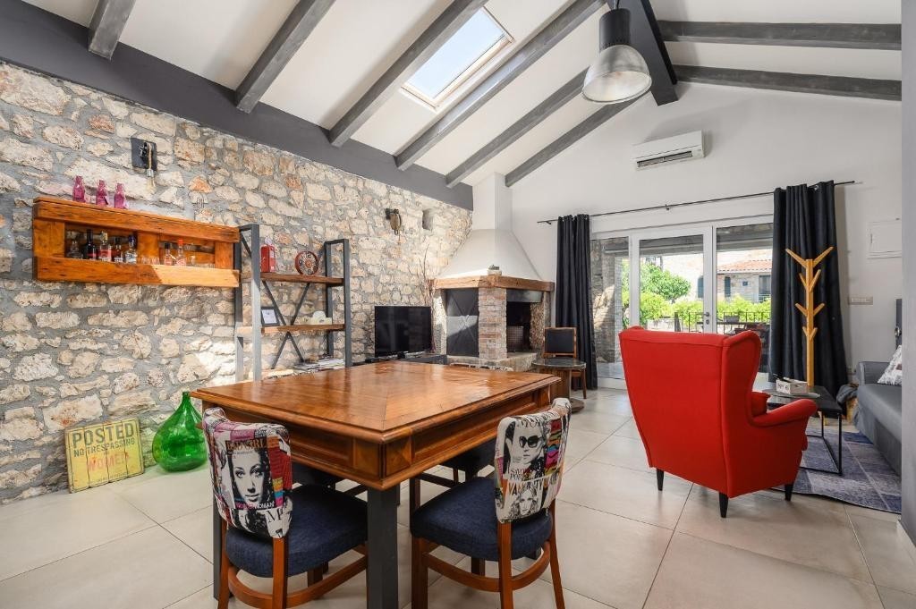 V bližini Poreča, 6 km od mesta in 4 km od morja, je naprodaj popolnoma prenovljena kamnita hiša, zadnja v nizu, v dveh nadstropjih in skupne površine 80 m². Nahaja se v mirnem okolju in združuje pristen istrski stil s sodobnim udobjem.