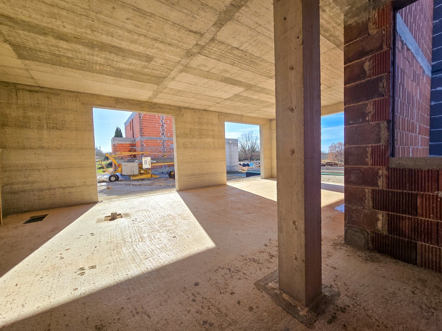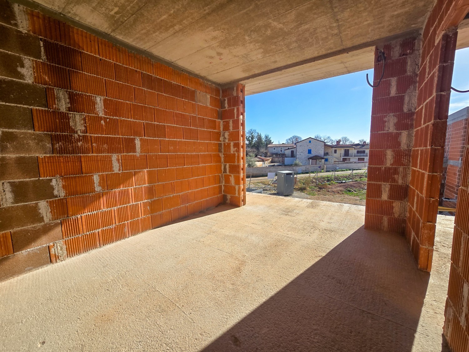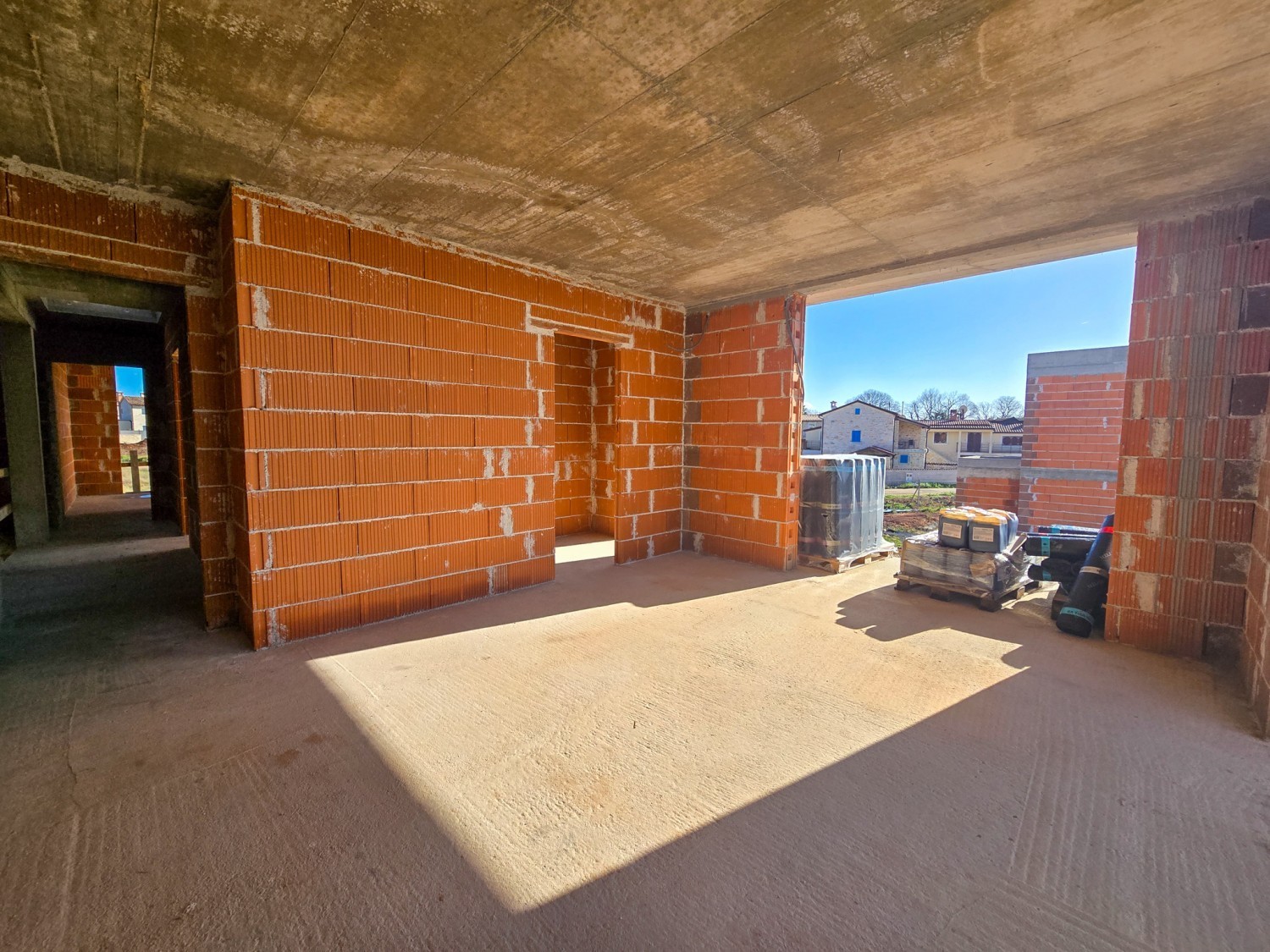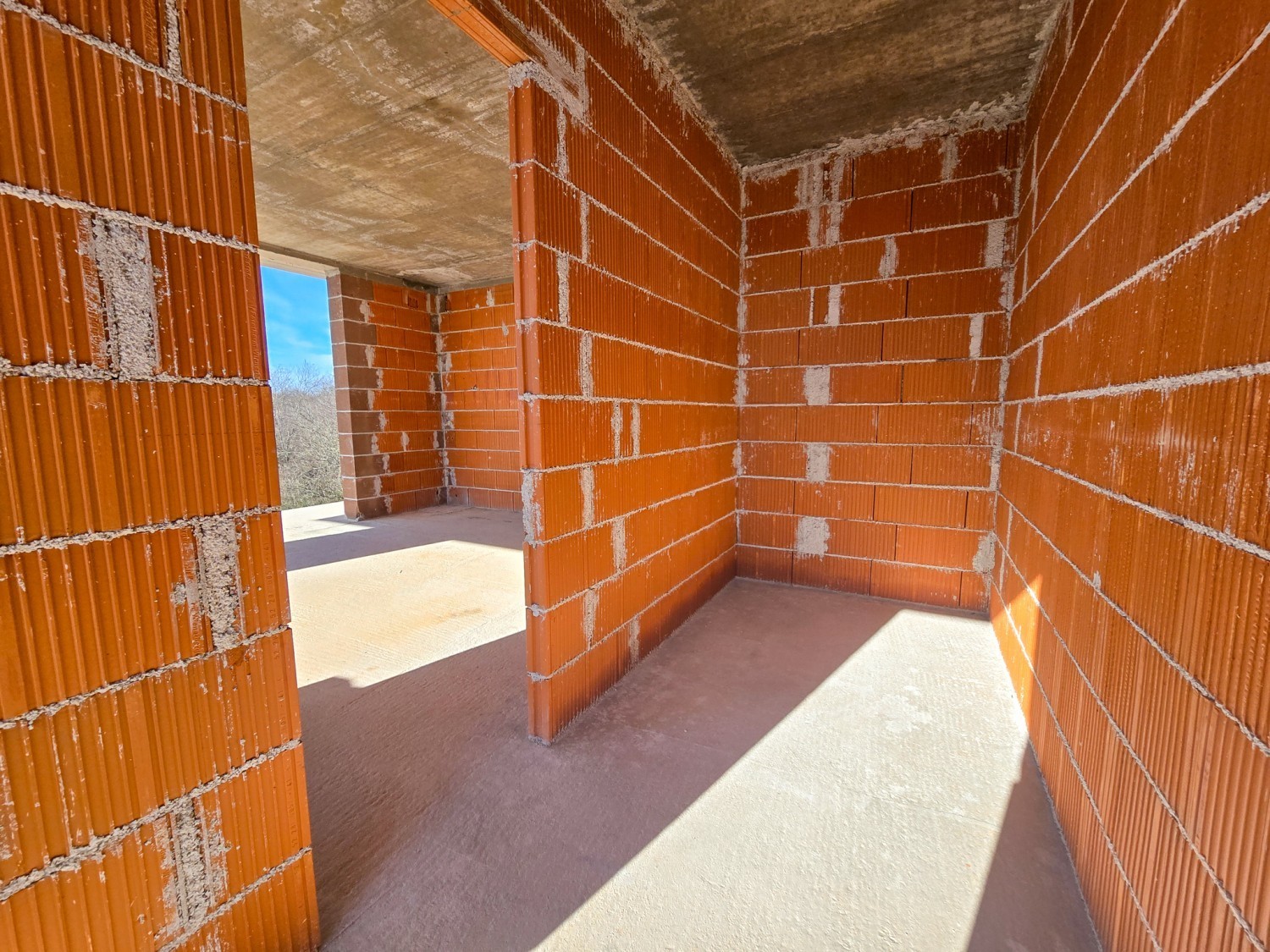POREČ- Pribl. 10 minut vožnje od morja in centra Poreča - vila modernega dizajna v gradnji na parceli 1080 m2 - Znotraj ograjenega dvorišča bo vila imela bazen 36,30 m2 in letno kuhinjo 23,88 m2, ki je povezana z zunanjo shrambo 4,91m2. Ta moderna vila ponuja 179,61 m2 neto bivalne površine, zasnovana je v dveh etažah: pritličje in prvo nadstropje. Glavni vhod je na severni fasadi, kjer pokriti prehod vodi na hodnik, ki povezuje spalnico s pripadajočo kopalnico, straniščem za goste in vodi v odprt prostor, ki ga sestavljajo kuhinja, jedilnica in prostorna dnevna soba. Iz jedilnice/dnevne sobe je možen izhod na delno pokrito teraso. Notranje stopnišče vodi do prostorov, ki se nahajajo v prvem nadstropju, treh spalnic s pripadajočimi kopalnicami, iz vsake sobe pa je možen izhod na balkon, ki ponuja razgled na okolico.